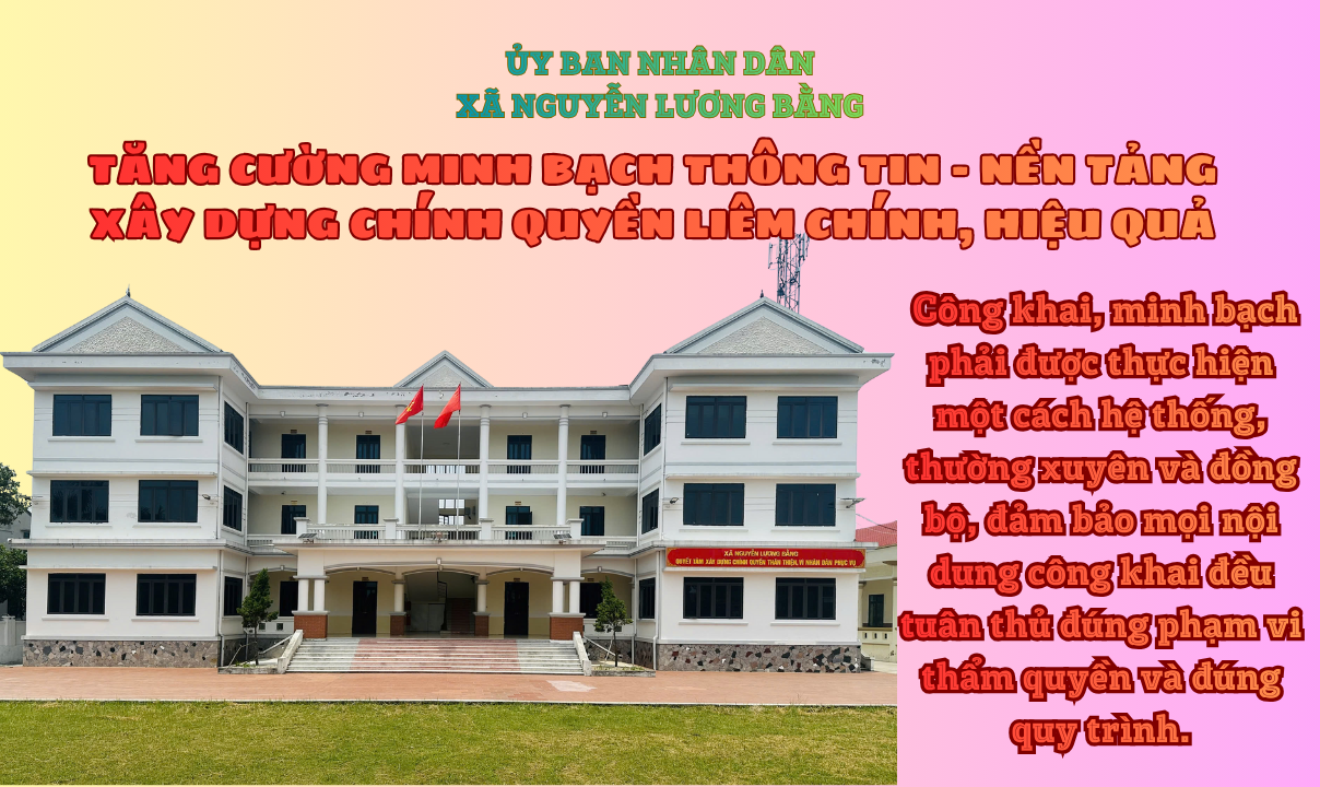 Nhằm tiếp tục nâng cao chất lượng quản lý nhà nước và đáp ứng kỳ vọng của Nhân dân về một nền hành chính chuyên nghiệp, hiện đại, UBND xã Nguyễn Lương Bằng đang đẩy mạnh công tác công khai, minh bạch trong mọi hoạt động quản lý, điều hành theo đúng tinh thần luật định.
