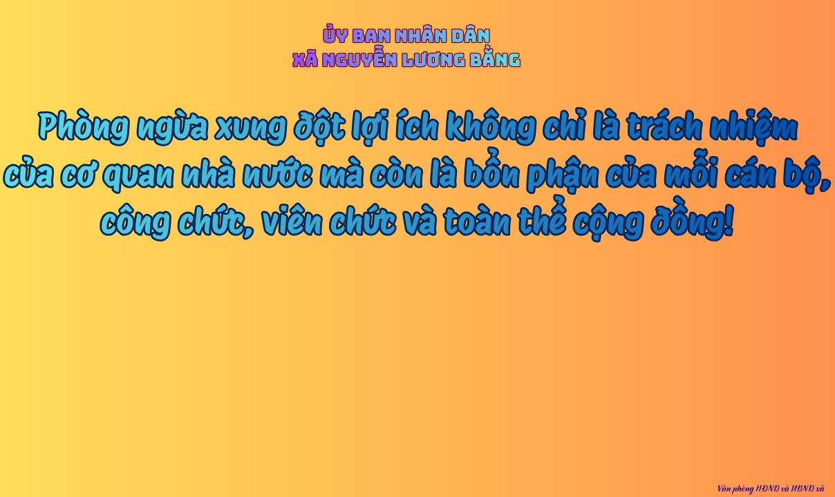 Phòng ngừa xung đột lợi ích không chỉ là trách nhiệm của cơ quan nhà nước mà còn là bổn phận của mỗi cán bộ, công chức, viên chức và toàn thể cộng đồng. Khi mỗi người đều giữ vững đạo đức công vụ, tôn trọng chuẩn mực nghề nghiệp, đặt lợi ích chung lên trên lợi ích cá nhân, chúng ta sẽ xây dựng được một nền hành chính thật sự trong sạch, vững mạnh, góp phần phát triển kinh tế -xã hội địa phương.