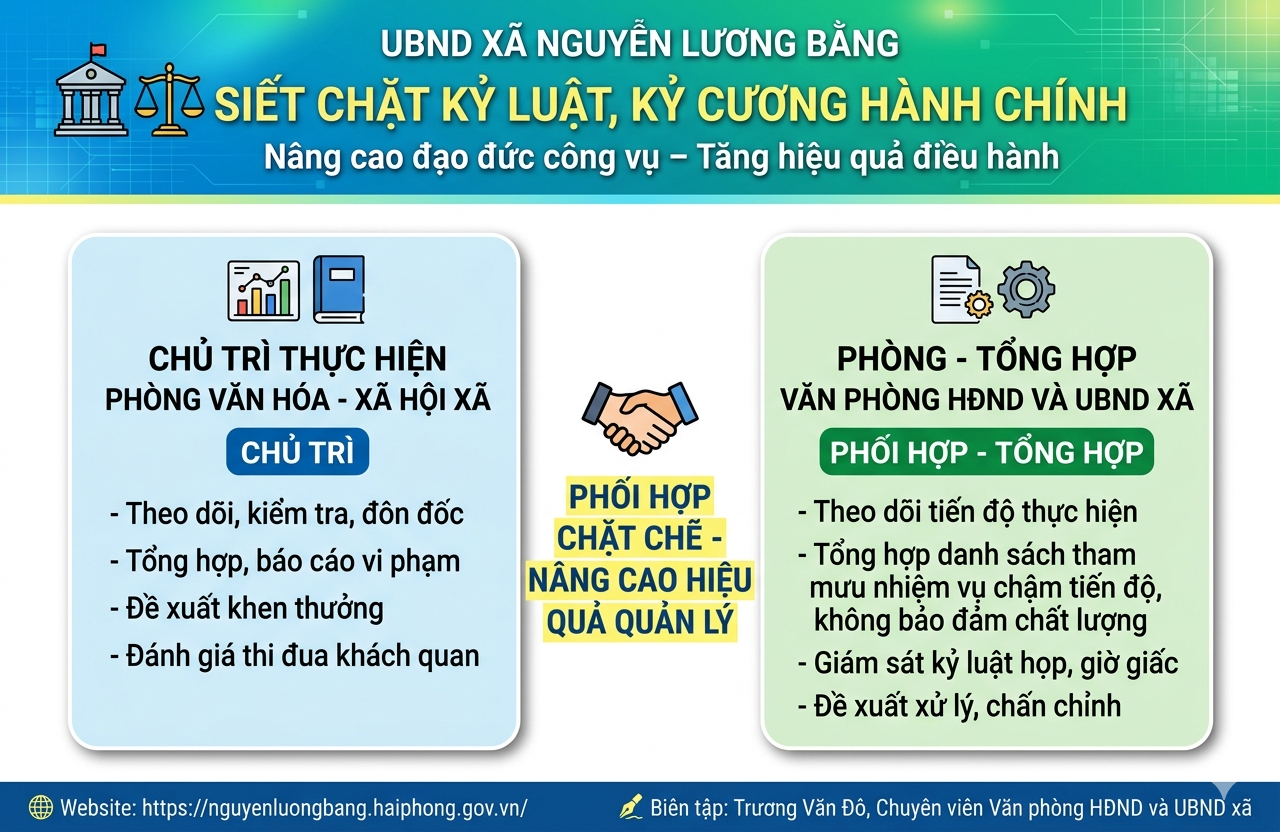 Ủy ban nhân dân xã Nguyễn Lương Bằng siết chặt kỷ luật, kỷ cương hành chính, nâng cao đạo đức công vụ phục vụ Nhân dân
