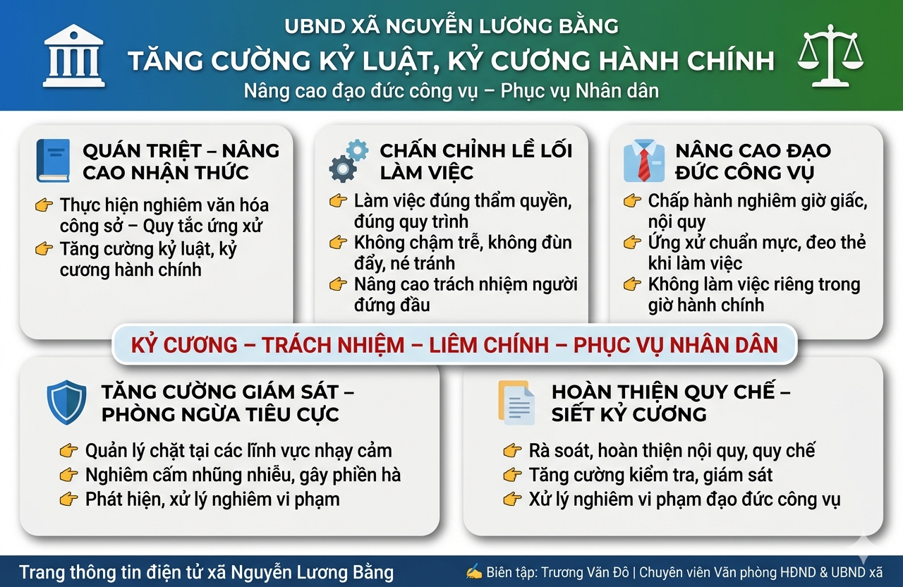Ủy ban nhân dân xã Nguyễn Lương Bằng tăng cường kỷ luật, kỷ cương hành chính