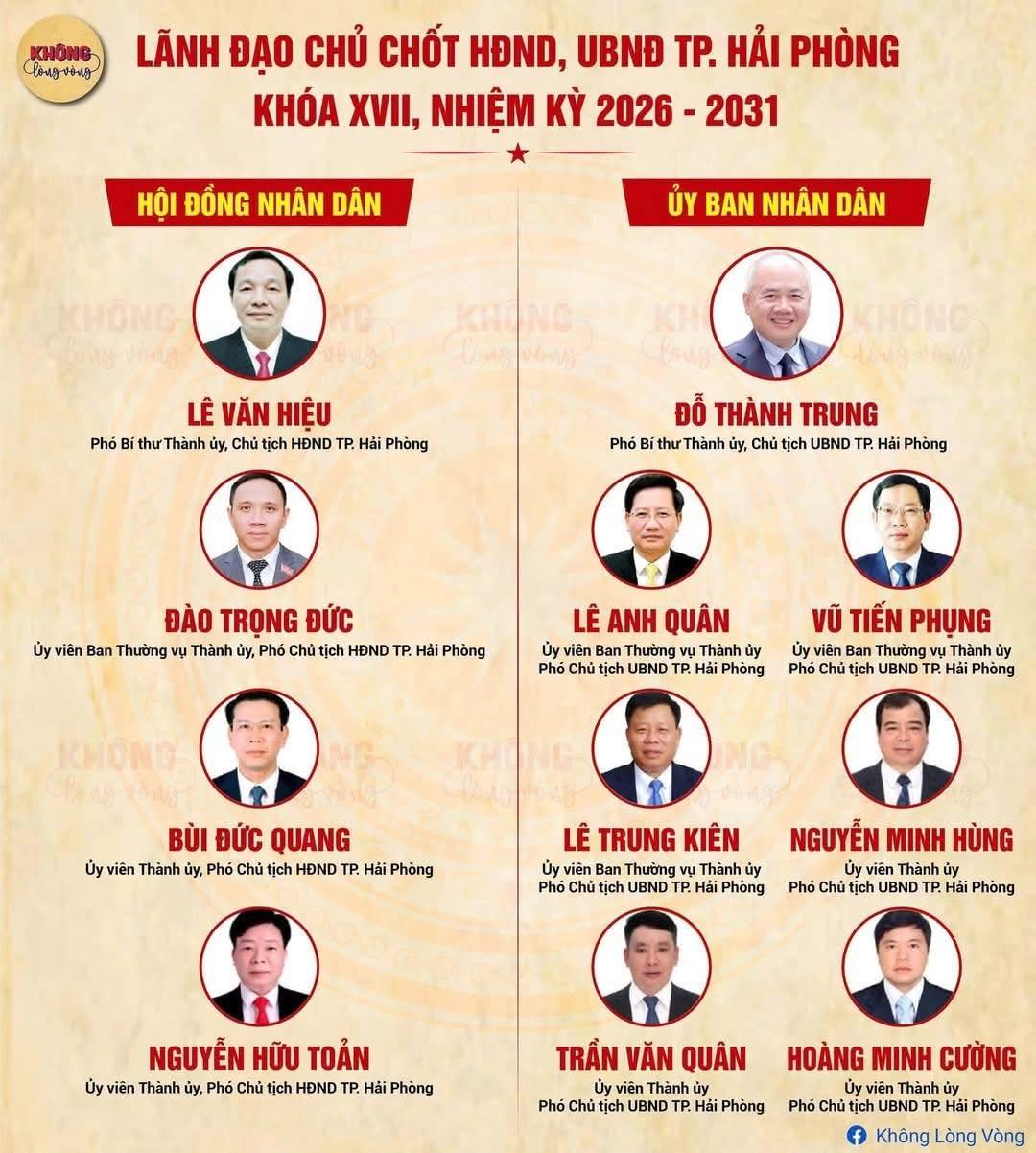 CÁC LÃNH ĐẠO CHỦ CHỐT CỦA HĐND VÀ UBND TP. HẢI PHÒNG NHIỆM KỲ 2026 - 2031