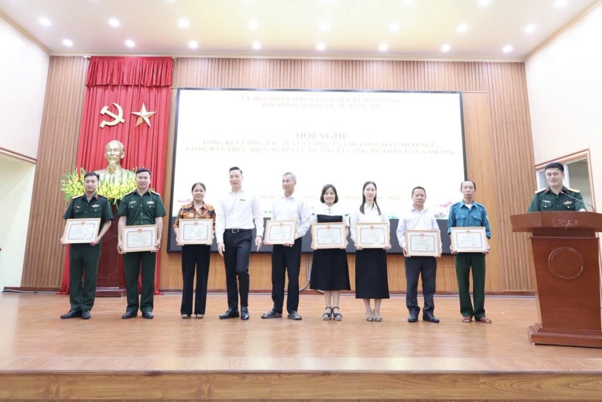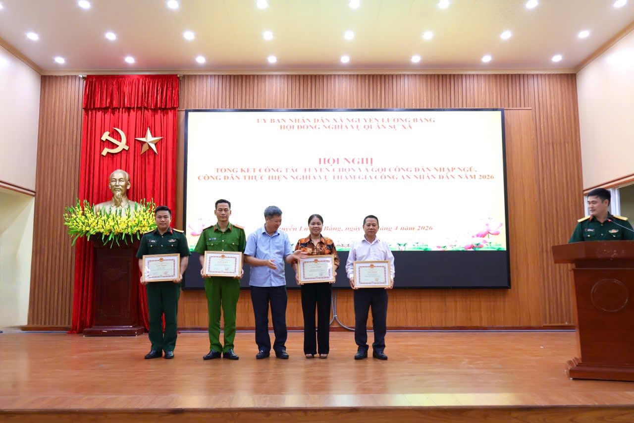 Nhân dịp này, UBND xã Nguyễn Lương Bằng đã khen thưởng 09 cá nhân có thành tích xuất sắc Nhân dịp này, UBND xã Nguyễn Lương Bằng đã khen thưởng 04 tập thể và 9 cá nhân có thành tích xuất sắc trong công tác tuyển chọn, gọi công dân nhập ngũ và thực hiện nghĩa vụ tham gia Công an nhân dân năm 2026./.