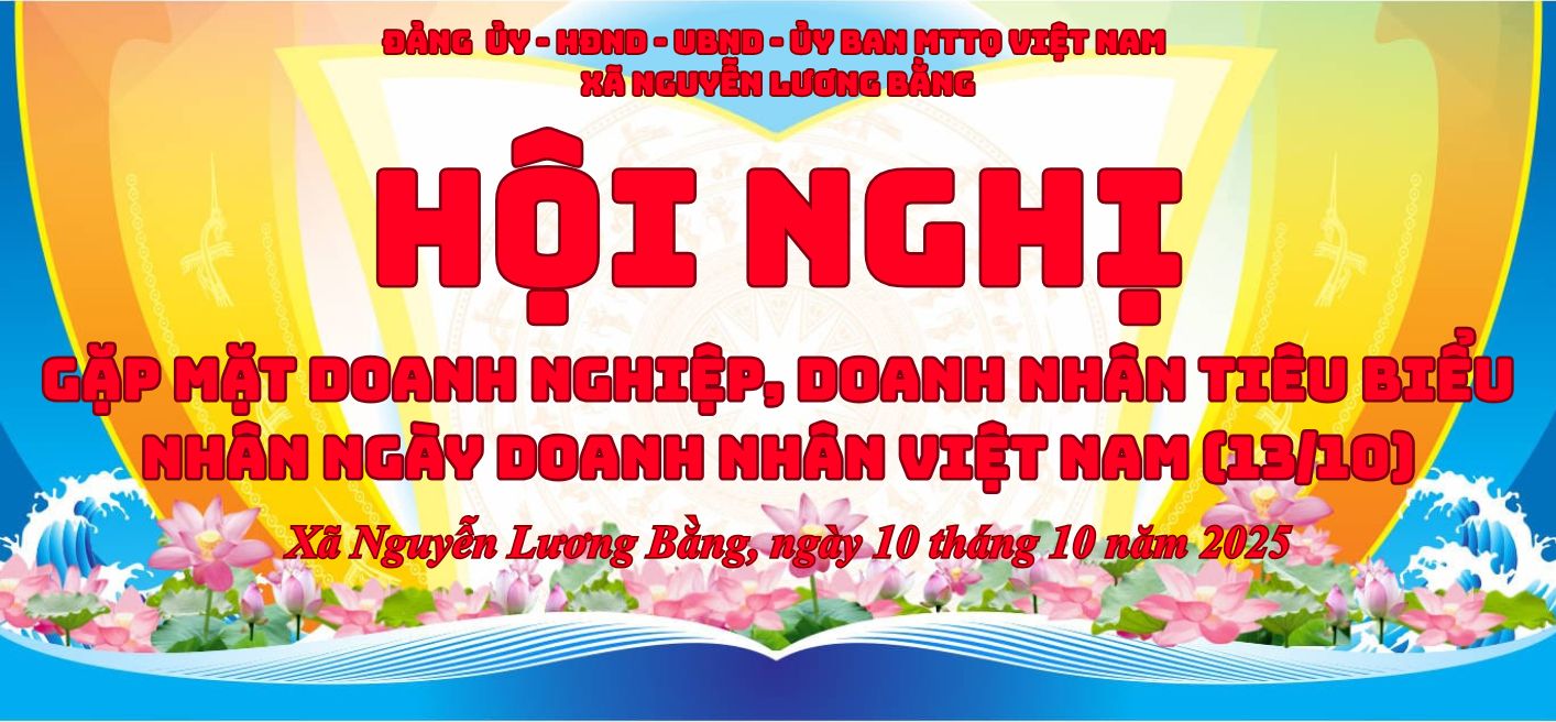 Hằng năm, ngày 13 tháng 10 đã trở thành Ngày Doanh nhân Việt Nam – dịp đặc biệt để xã hội tôn vinh vai trò, ghi nhận những đóng góp to lớn của cộng đồng doanh nghiệp, doanh nhân đối với sự phát triển kinh tế - xã hội của đất nước. Hòa chung không khí ấy, Ủy ban nhân dân xã Nguyễn Lương Bằng sẽ tổ chức Hội nghị Gặp mặt doanh nghiệp, doanh nhân tiêu biểu năm 2025 vào chiều ngày 10/10/2025 tại Trung tâm tổ chức sự kiện Tuyển Huế Place, với nhiều nội dung ý nghĩa và thiết thực.