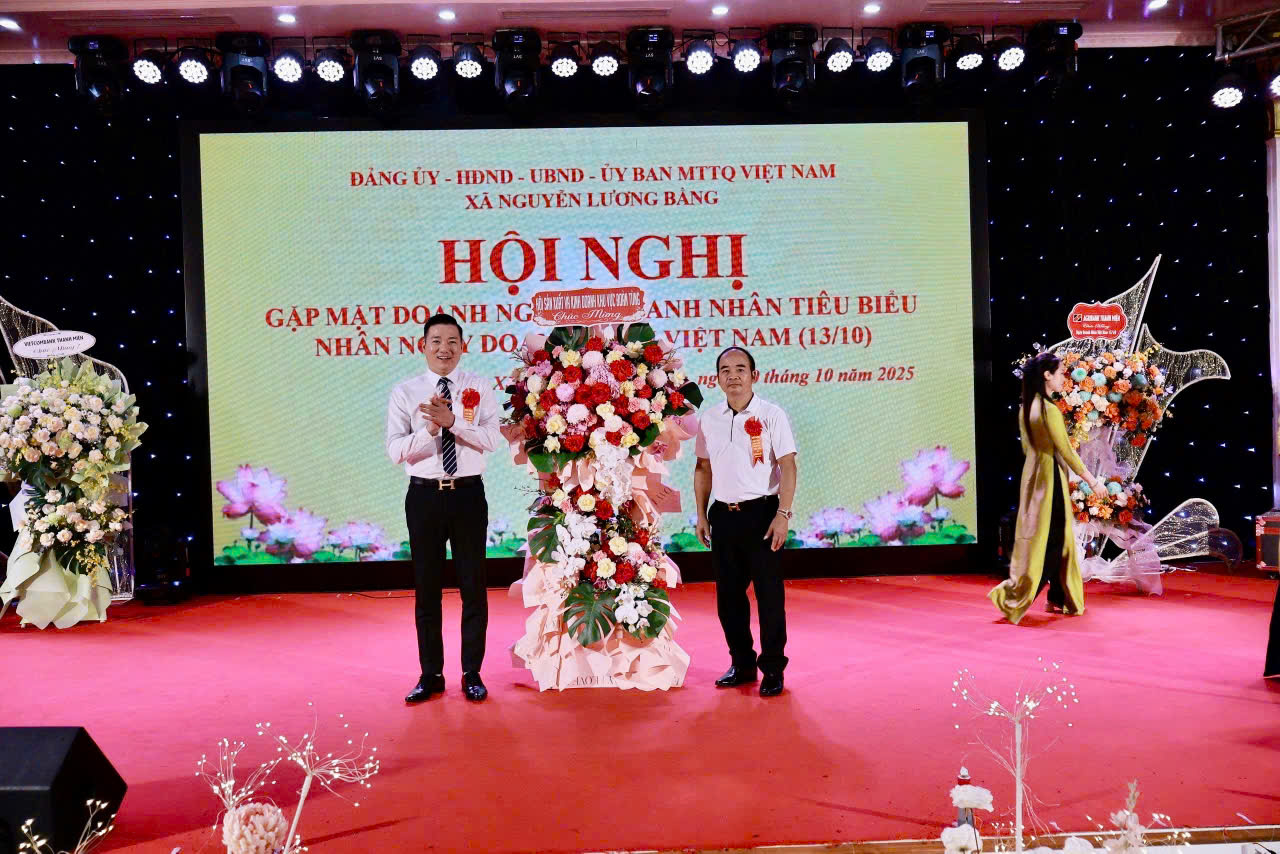Trong không khí thi đua sôi nổi của toàn Đảng, toàn dân hướng tới chào mừng kỷ niệm Ngày Doanh nhân Việt Nam 13/10 – ngày tôn vinh những người làm kinh tế sáng tạo, dám nghĩ, dám làm, góp phần làm giàu cho quê hương, đất nước, chiều ngày 10 tháng 10 năm 2025, tại Trung tâm tổ chức sự kiện Tuyển Huế Place, Ủy ban nhân dân xã Nguyễn Lương Bằng đã long trọng tổ chức Hội nghị gặp mặt doanh nhân, doanh nghiệp tiêu biểu trên địa bàn xã.