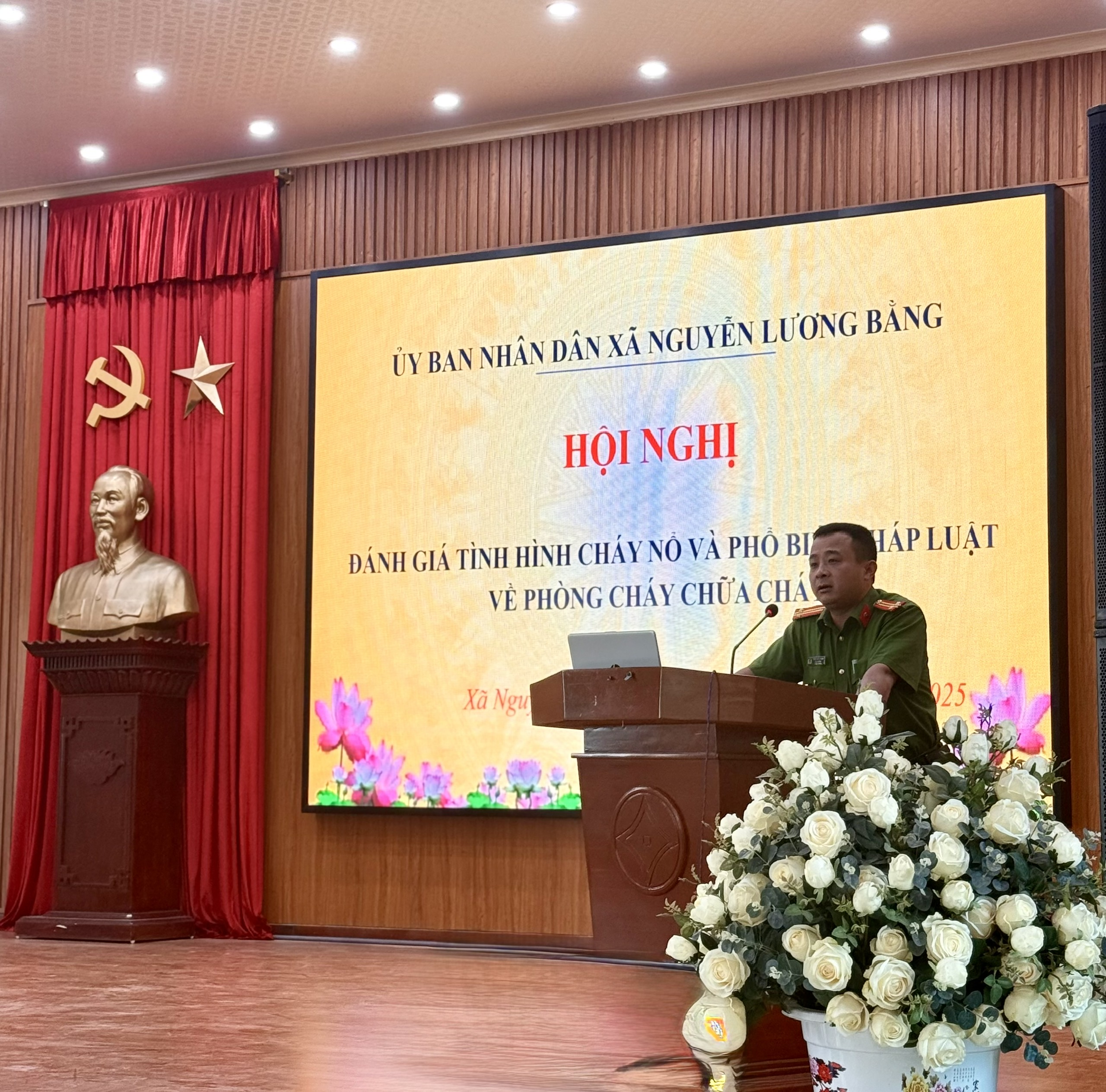 Hưởng ứng “Ngày toàn dân phòng cháy, chữa cháy, sáng ngày 4/10/2025 tại Hội trường Nhà văn hóa trung tâm, Ủy ban nhân dân xã Nguyễn Lương Bằng đã long trọng tổ chức Hội nghị đánh giá tình hình cháy nổ, phổ biến pháp luật về phòng cháy, chữa cháy và triển khai kế hoạch thành lập Đội tự quản phòng cháy, chữa cháy của xã.