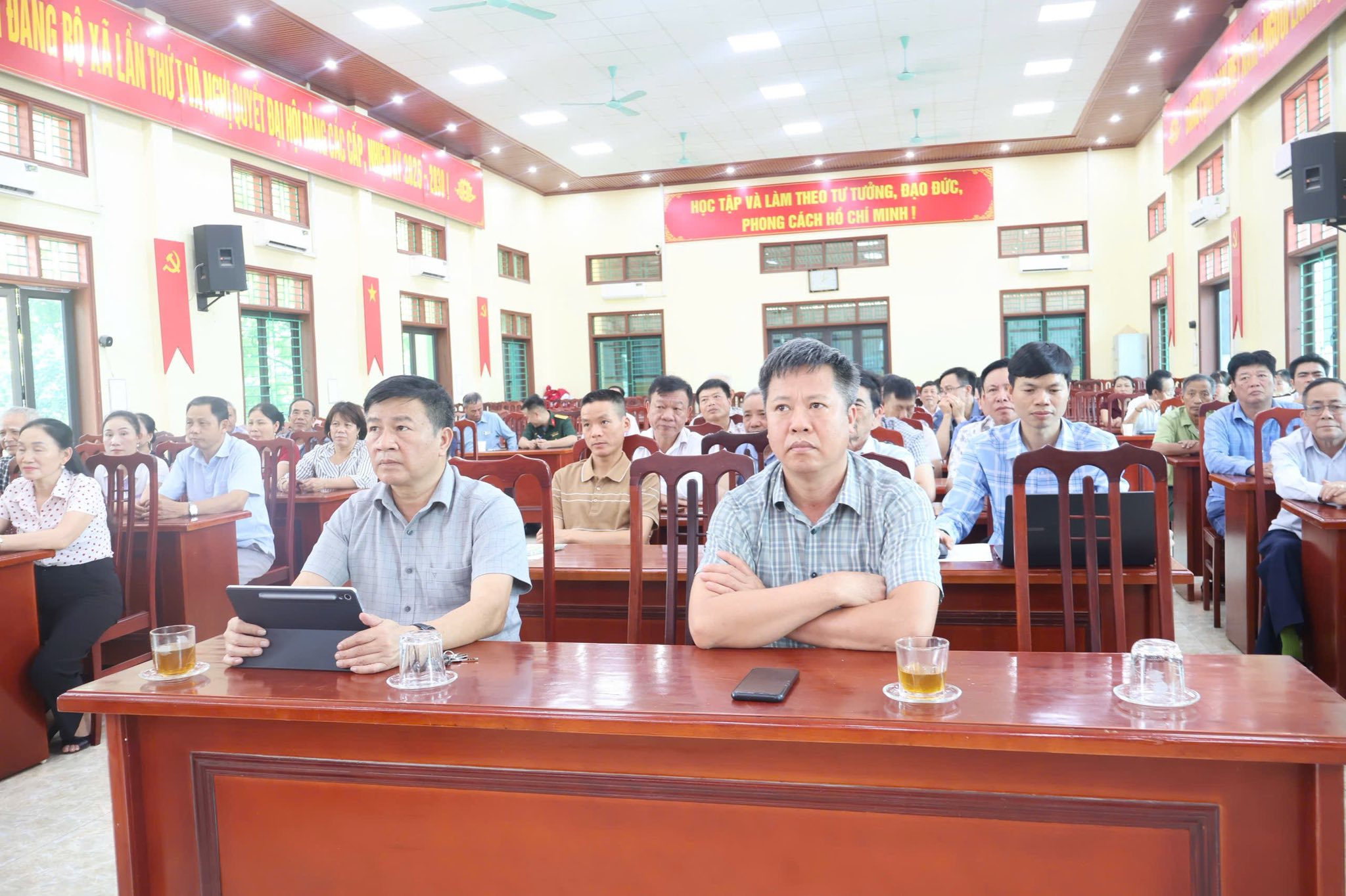 Quang cảnh hội nghị Chiều ngày 28/4/2026, tại Hội trường Nhà văn hóa Trung tâm xã, Ban Thường trực Ủy ban MTTQ Việt Nam xã Nguyễn Lương Bằng phối hợp với Thường trực HĐND xã tổ chức Hội nghị tiếp xúc cử tri sau Kỳ họp thứ Nhất, Quốc hội khóa XVI. Hội nghị được tổ chức theo hình thức kết hợp trực tiếp tại điểm cầu Phòng đa năng - Trung tâm Hội nghị - Biểu diễn thành phố Hải Phòng và trực tuyến tới 114 xã, phường, đặc khu trên địa bàn thành phố.